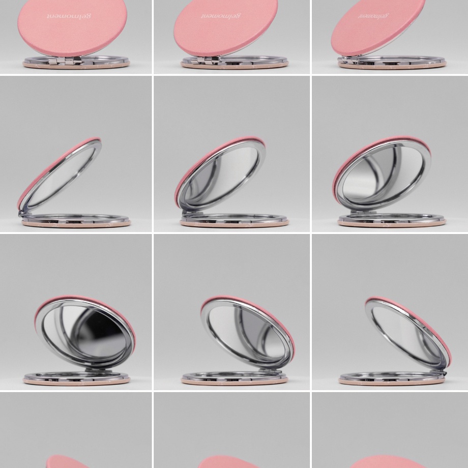 Our compact mirror is beautifully constructed with a faux-leather encasement, pink on one side and rich cream on the other. With a sleek design, it features an invisible magnetic clasp that keeps it shut securely in your bag.